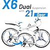 - ✅ {Dual Disc Brakes} :: This bike features dual disc brakes on both the front and rear wheels, providing superior stopping power and control. These brakes are more effective than traditional V-brakes, ensuring you can stop safely and quickly, even on steep descents or in wet conditions.